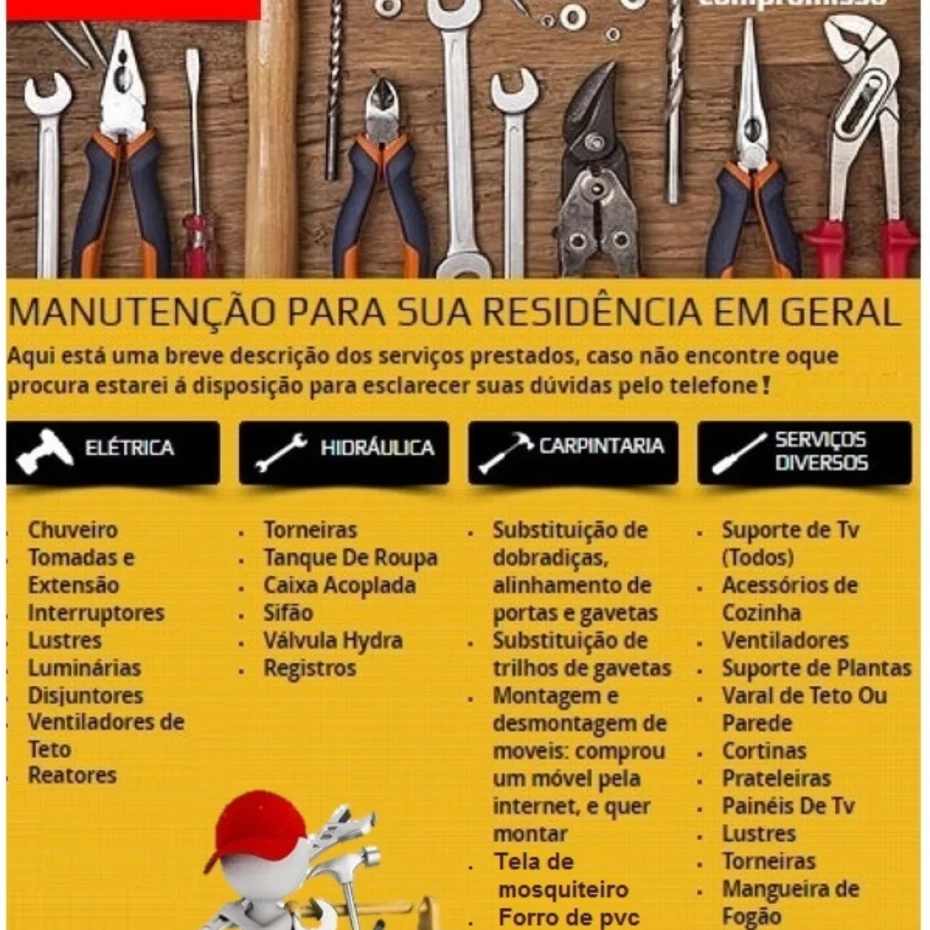 • Pequenos reparos e instalações em geral, para que você não precise se preocupar com detalhes do dia a dia.